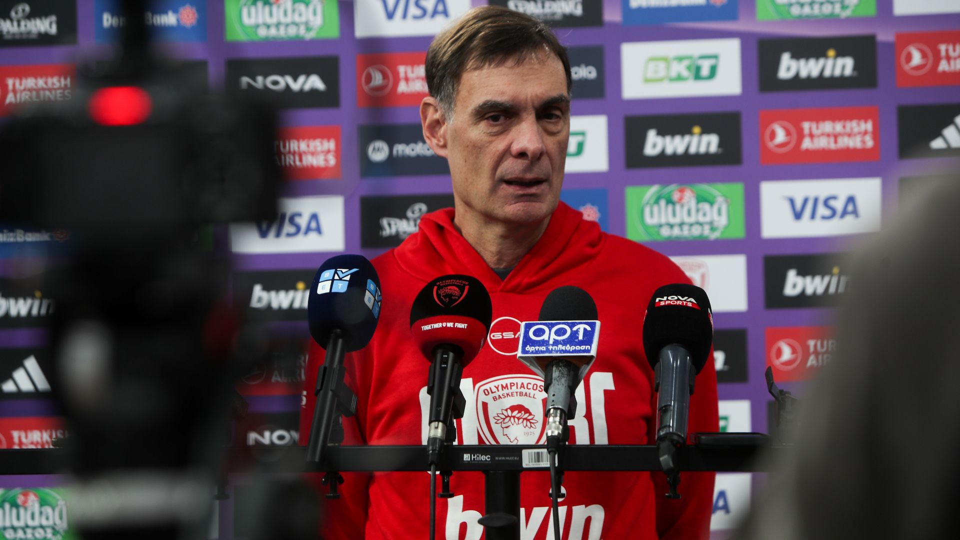 Για τον Ολυμπιακό: "Κι εμείς πρέπει να συνειδητοποιήσουμε ότι είναι ένα παιχνίδι για μας σε ένα timing μετά από 2 ήττες. Σε ένα timing που γενικά είχαμε πολλά μπες-βγες στην ομάδα μας. Οι 2 από τους 3 ψηλούς μας έμειναν έξω. Αναγκαστήκαμε και πήγαμε σε αδόκιμα σχήματα. Ταυτόχρονα, δύο σημαντικοί μας παίκτες - Βεζένκοβ και Φουρνιέ - ταλαιπωρήθηκαν από ίωση.
