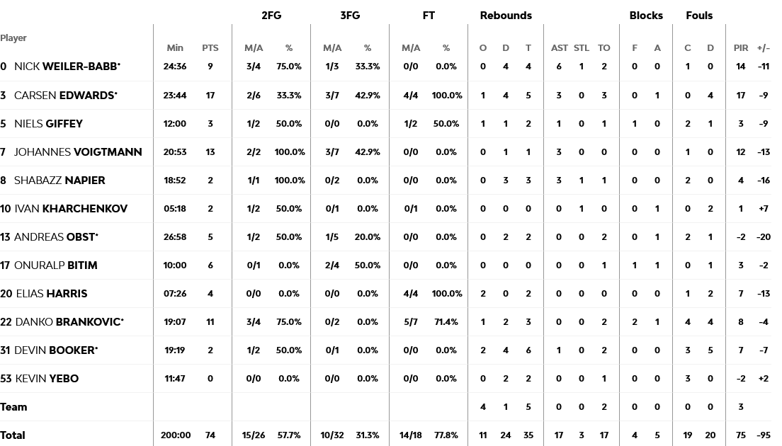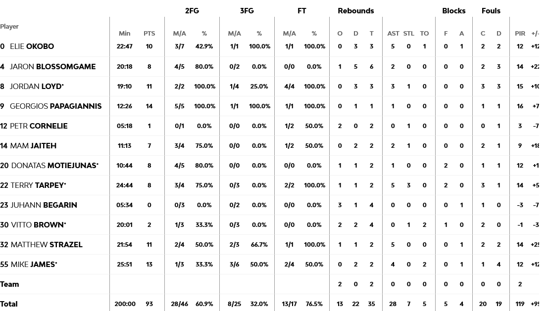 Για του Μονεγάσκους ξεχώρισαν οι Παπαγιάννης με 14 πόντους και Τζέιμς με 13, ενώ για την Μπάγερν ο Έντουαρντς είχε 17 πόντους.