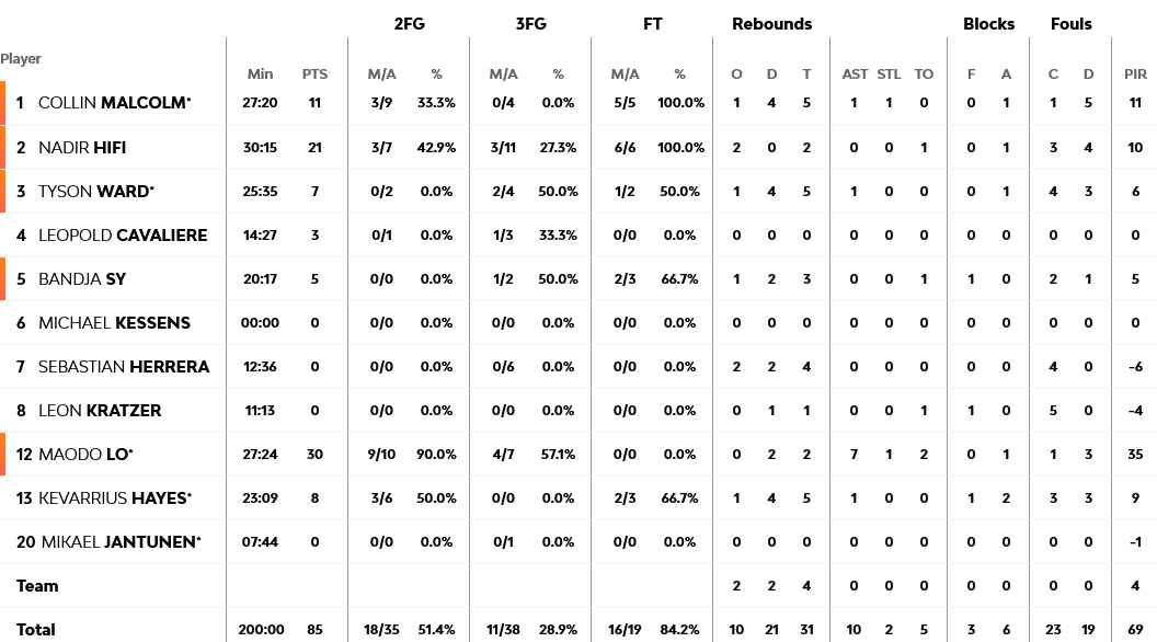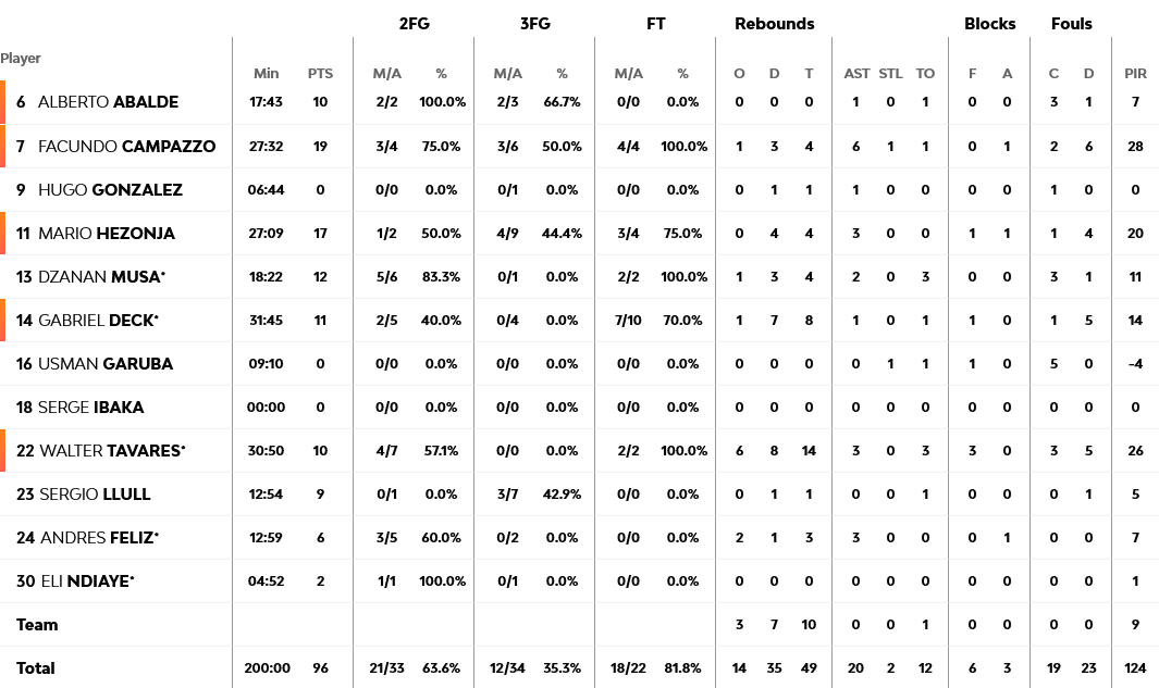Έξι παίκτες της Ρεάλ τελείωσαν το ματς με διψήφιο αριθμό πόντων, με τον Καμπάτσο να έχει 19, τον Χεζόνια 17, ενώ ο Ταβάρες είχε 10 πόντους και 14 ριμπάουντ. Για την Παρί, που, παρά την απουσία του Σορτς, κοίταξε για 37’ στα μάτια τους Μαδριλένους, όμως δεν απέφυγε την δεύτερη συνεχόμενη ήττα της, ο Λο είχε 30 πόντους και επτά ασίστ και ο Χίφι 21 πόντους.