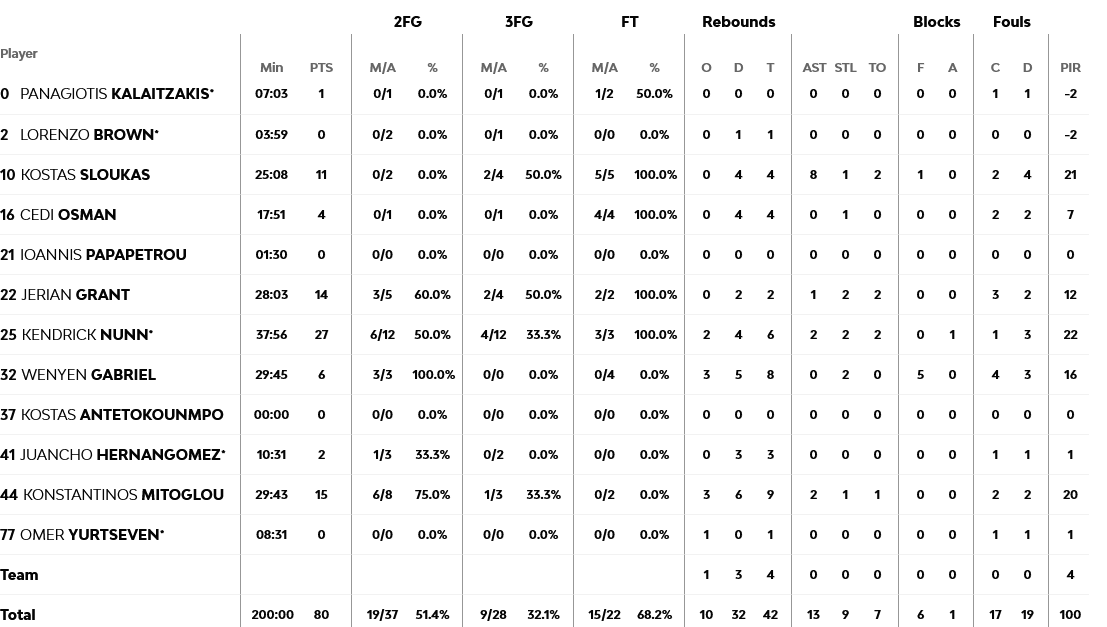 Ξεχώρισαν: 15 πόντους και εννιά ριμπάουντ είχε ο καθοριστικός Μήτογλου, ενώ υποσχέσεις άφησε ο Γκάμπριελ με έξι πόντους, οκτώ ριμπάουντ και πέντε τάπες! Για την Μπάγερν, 19 πόντους με 6/11 τρίποντα είχε ο Ομπστ.