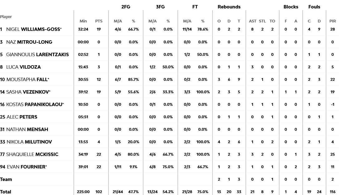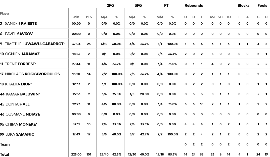 Ξεχώρισαν: Από 19 πόντους είχαν Βεζένκοβ και Γουίλιαμς – Γκος, ενώ για την Μπασκόνια, ο Καμπαρό είχε 25 πόντους και ο Σάμανιτς 17.