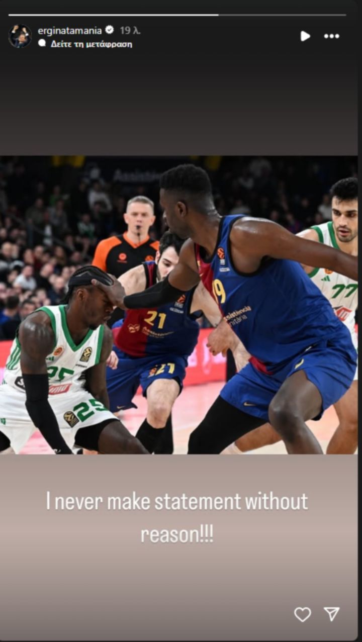 Χαρακτηριστική η ανάρτηση που πραγματοποίησε στον λογαριασμό του στο Instagram, η οποία δείχνει τον Κέντρικ Ναν να δέχεται φάουλ από τον Γιουσούφα Φαλ, με τον Αταμάν να λέει χαρακτηριστικά «Ποτέ δεν κάνω δήλωση χωρίς λόγο!!!»