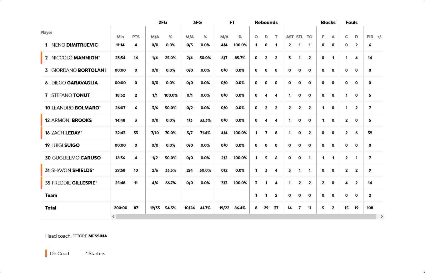 Η μεγαλύτερη διαφορά: +16 υπέρ της Αρμάνι, 63-50 στο 30'