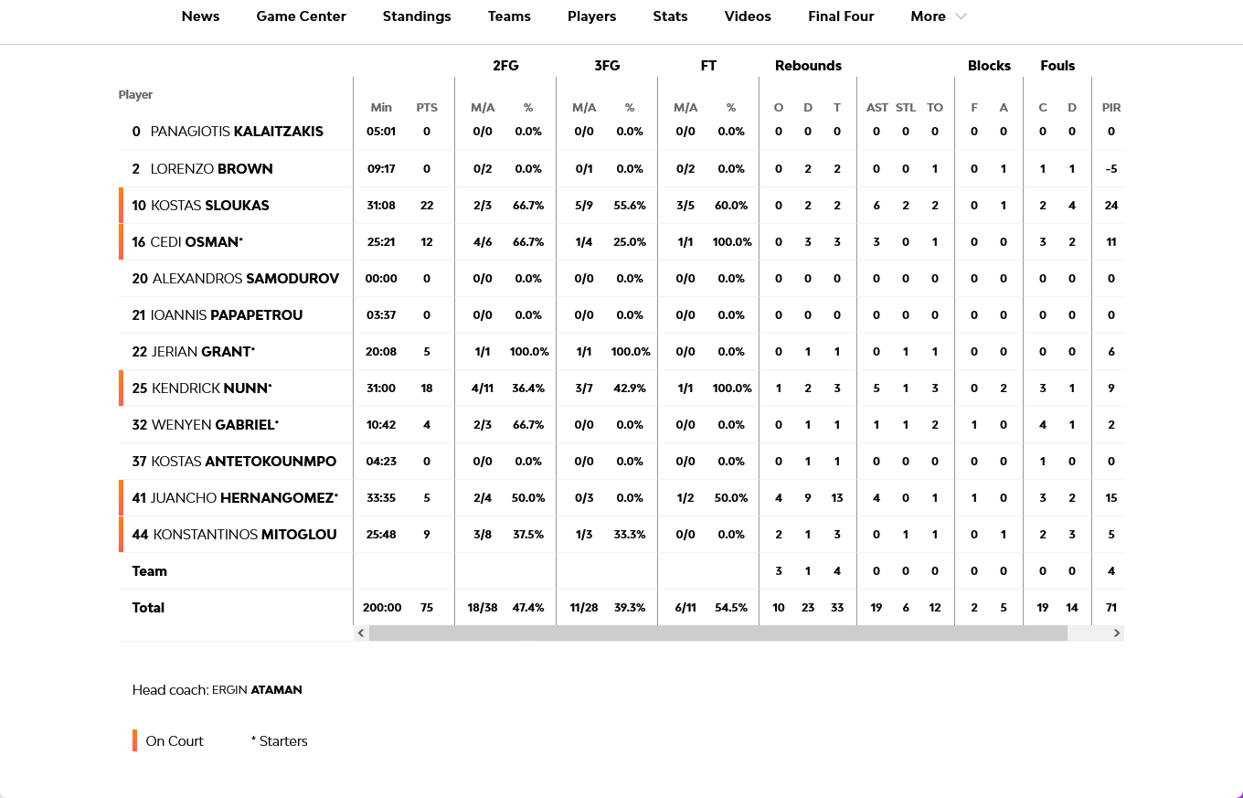 Ξεχώρισαν: Συμπαραστάτης του ΛεΝτέι ΄ηταν ο Μάνιον με 14, από πλευράς Παναθηναϊκού, Σλούκας και Ναν είχαν από 22 και 18 αντίστοιχα