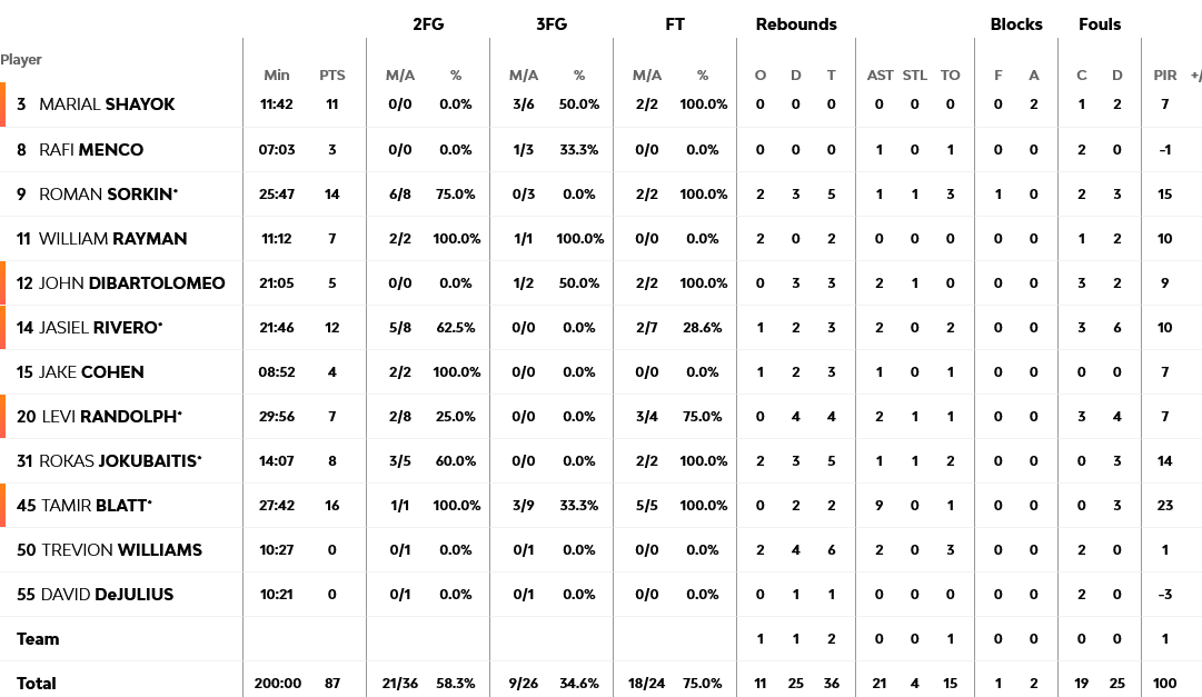 Δεκάλεπτα: 22-19, 48-46, 63-70, 87-93