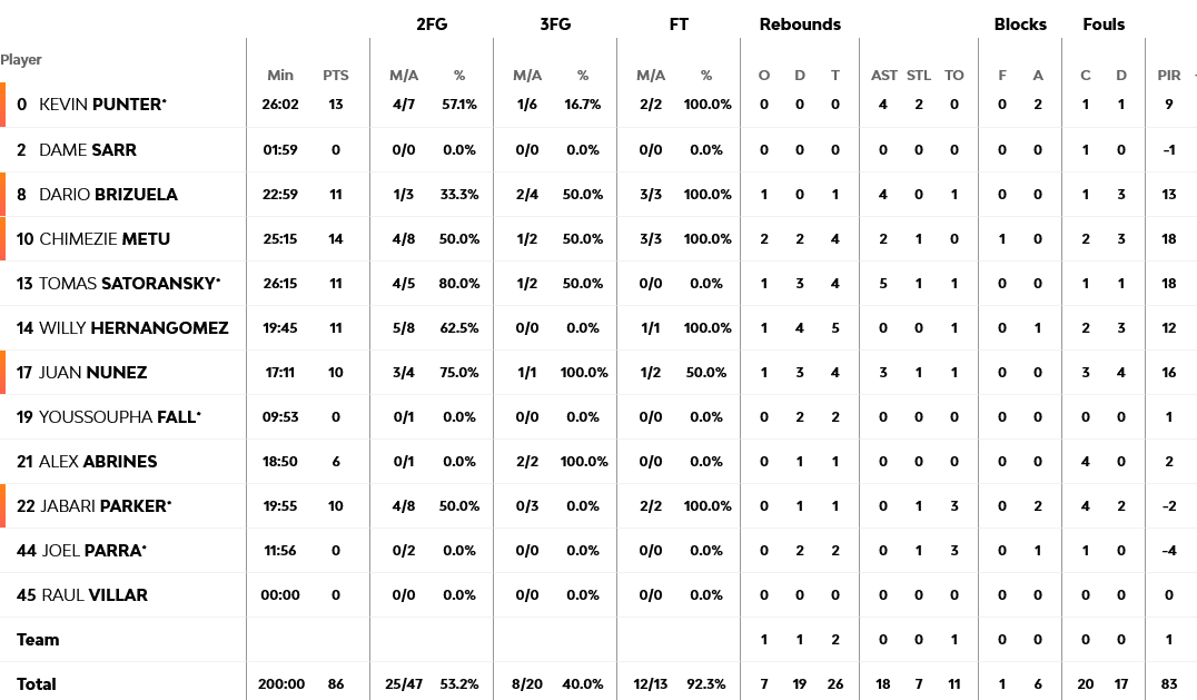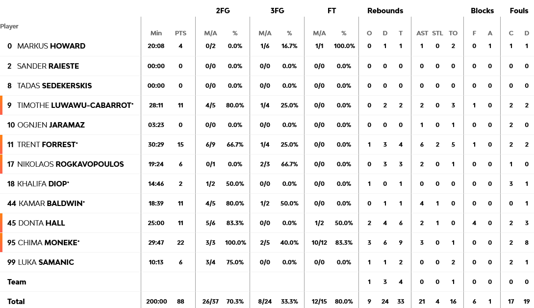 Από την Μπασκόνια διακρίθηκαν οι Μονέκε και Φόρεστ με 22 και 15 πόντους αντίστοιχα. Από την Μπαρτελόνα ξεχώρισαν οι Μέτου και Πάντερ με 14 και 13 πόντους.