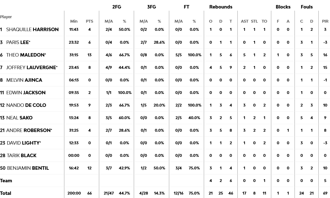 Από τον Ερυθρό Αστέρα διακρίθηκε ο Κάνααν με 11 πόντους, με τους Κάλινιτς και Μακιντάιρ να σκοράρουν από 10 πόντους έκαστος. Από την Βιλερμπάν ξεχώρισαν οι Μαλεντόν και Μπεντίλ με 13 και 12 πόντους αντίστοιχα.