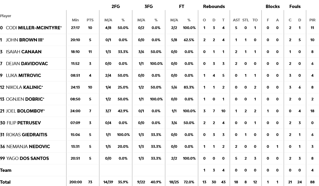 Δεκάλεπτα: 19-18, 36-31, 56-48, 73-66