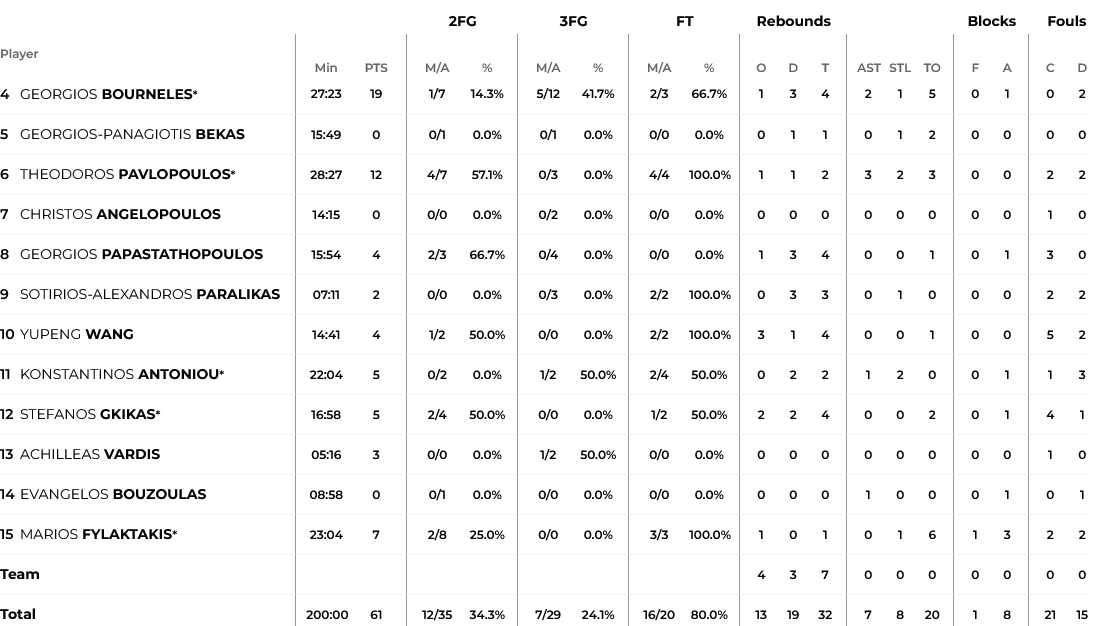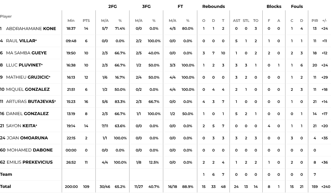 Ο Μπουρνελές με 15 πόντους ήταν ο πρώτος σκόρερ του Ολυμπιακού, με τον Παυλόπουλο να προσθέτει 12, ενώ για την Μπαρτσελόνα, ο Μπουγαγιέβας είχε 16 πόντους και ο Κονέ 14.