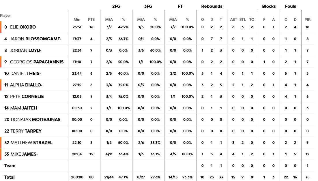 Για την Αρμάνι ξεχώρισε ο Μίροτιτς με 22 πόντους και ακολούθησε ο Σιλντς με 19, ενώ για τους Μονεγάσκους το δίδυμο Οκομπο και Τζέιμς με 16 και 15 πόντους.