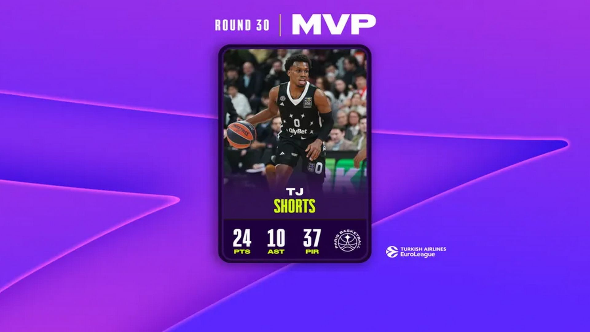 Στα χέρια του Τι Τζέι Σορτς κατέληξε το βραβείο του πολυτιμότερου παίκτη της 30ης αγωνιστικής της Euroleague.