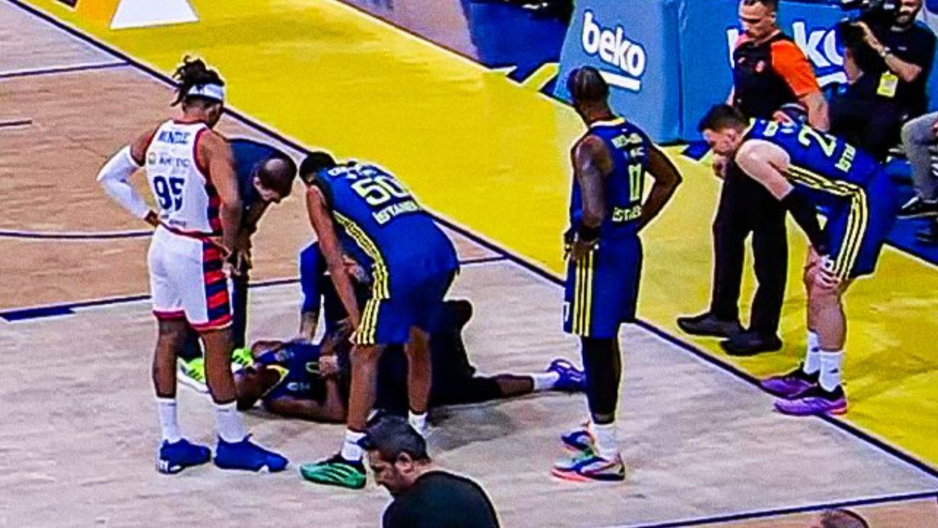Ο Αμερικανός άσος έπεσε άσχημα στο παρκέ μετά από άλμα και έδειξε να πονάει αρκετά στη μέση του, με τους ανθρ΄ωπους της Φενέρ να μπαίνουν στο γήπεδο ώστε να τον βοηθήσουν να φύγει για τα αποδυτήρια.