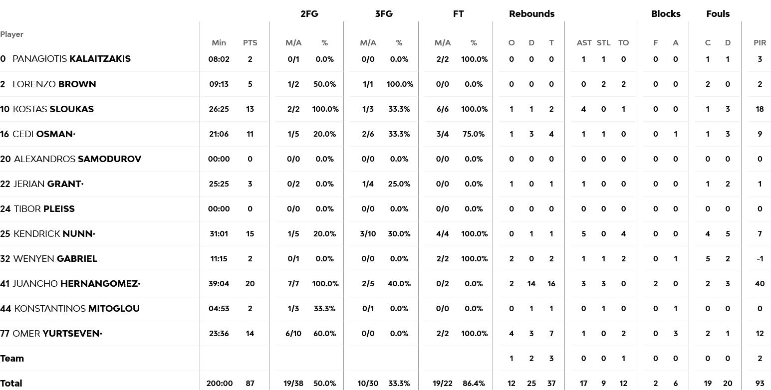 Ξεχώρισαν: Από πλευράς πρασίνων ο Γιούρτσεβεν με 14 πόντους και 7 ριμπάουτ, ενώ από τους Τούρκους οι Λάρκιν και Πουαριέ με 17 πόντους αντιστοίχως.