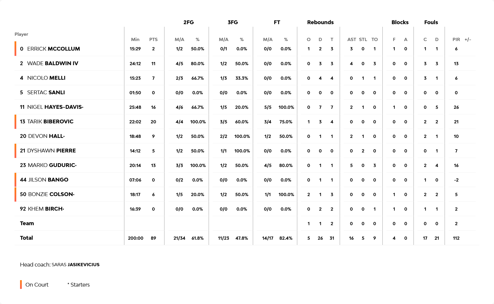 Εξαιρετικός ο Μπιμπέροβιτς με 20 πόντους, με τον Χέιζ – Ντέιβις να έχει 16 πόντους και επτά ριμπάουντ, ενώ Γκούντουριτς και Μπάλντγουιν είχαν 13 και 11 πόντους αντίστοιχα.