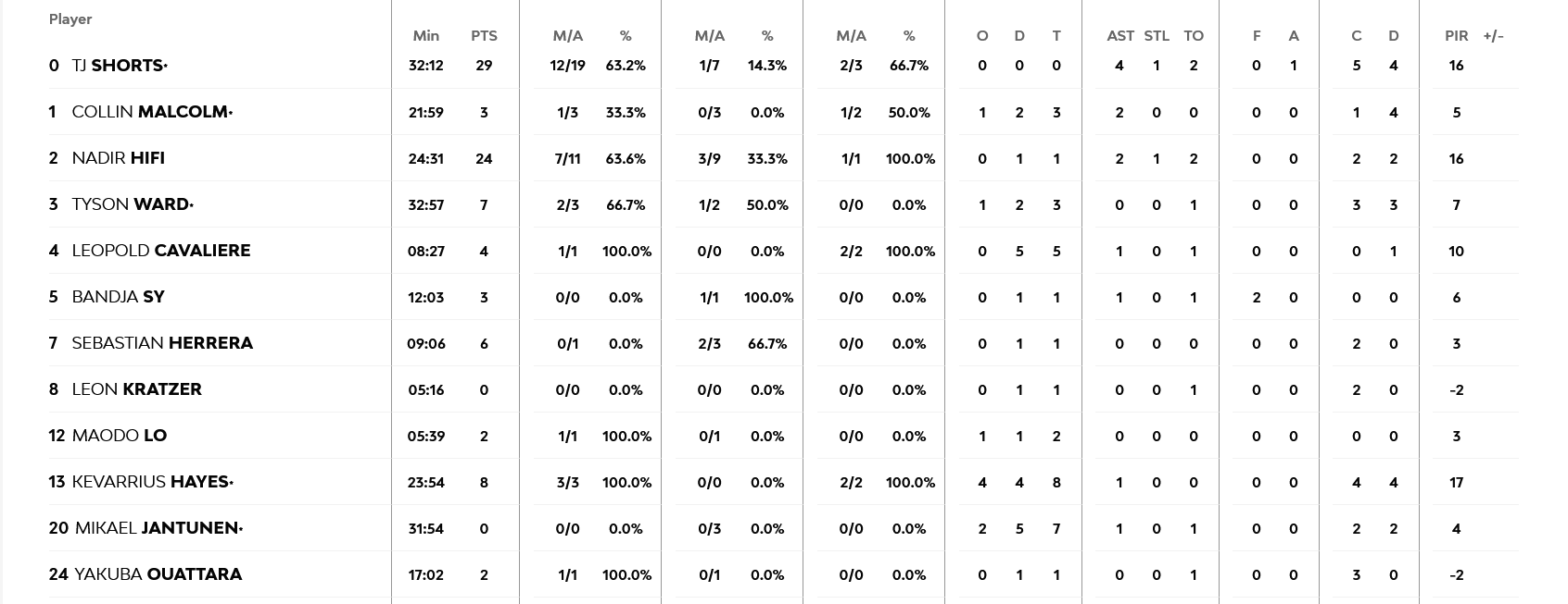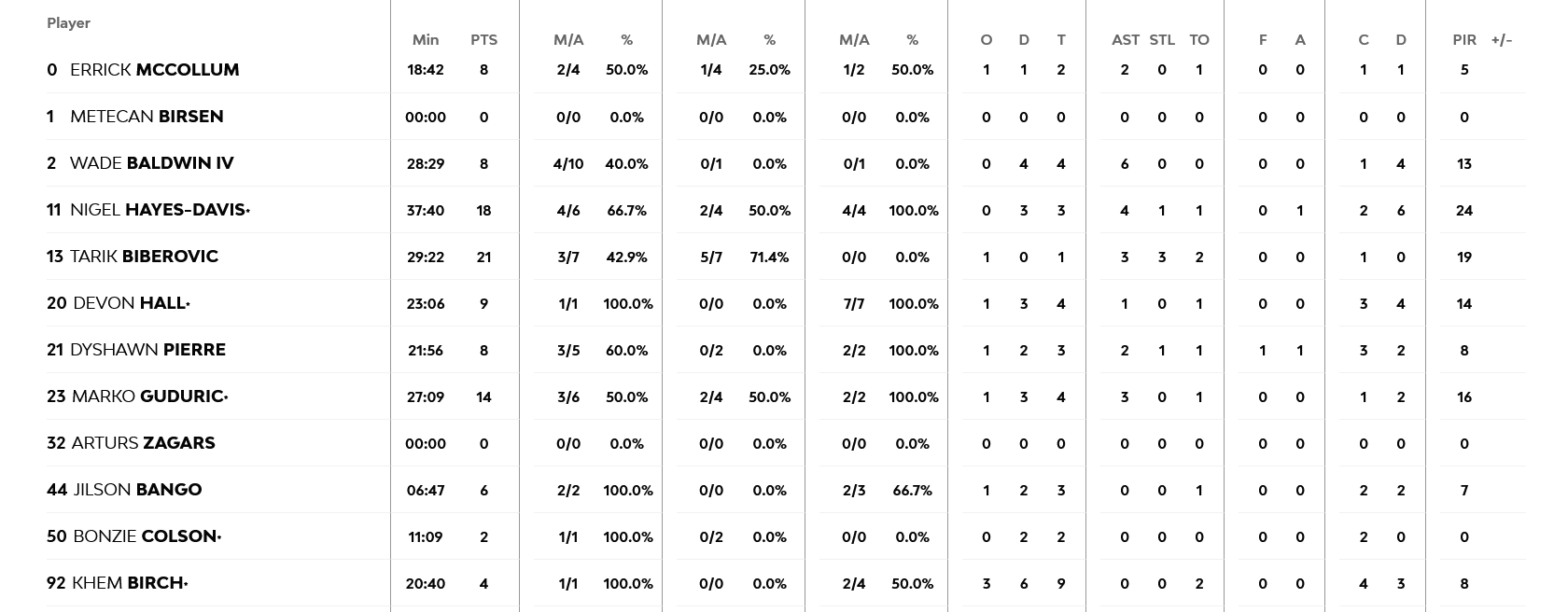 Για τους νικητές ξεχώρισε οι Μπιμπέροβιτς με 21 πόντους και Χέιζ Ντέιβις με 14, ενώ από τους γηπεδούχους το γνωστό δίδυμο Σορτς – Χίφι με 28 και 24 πόντους αντίστοιχα.