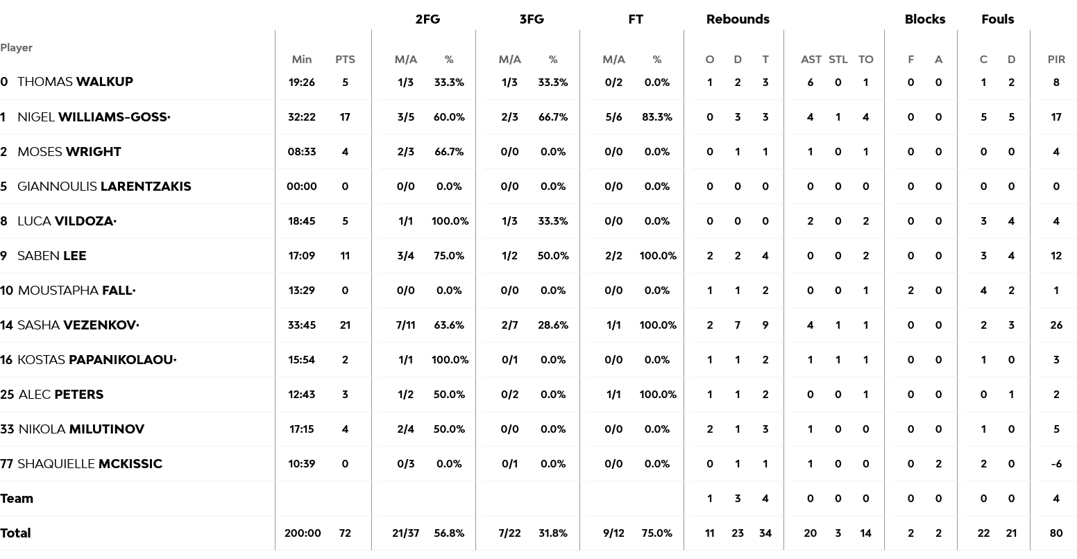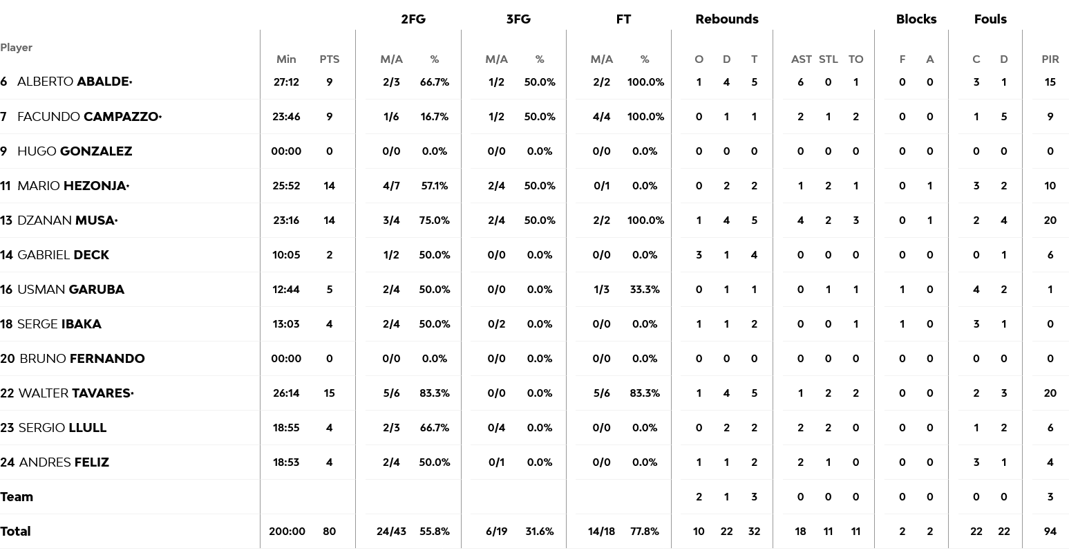 Ξεχώρισαν: Γκος και Λι είχαν 17 και 11 πόντους αντίστοιχα, ενώ για την Ρεάλ, ο Ταβάρες επέστρεψε στις πολύ καλές εμφανίσεις, με 15 πόντους, με τους Χεζόνια και Μούσα να έχουν από 14 έκαστος.
