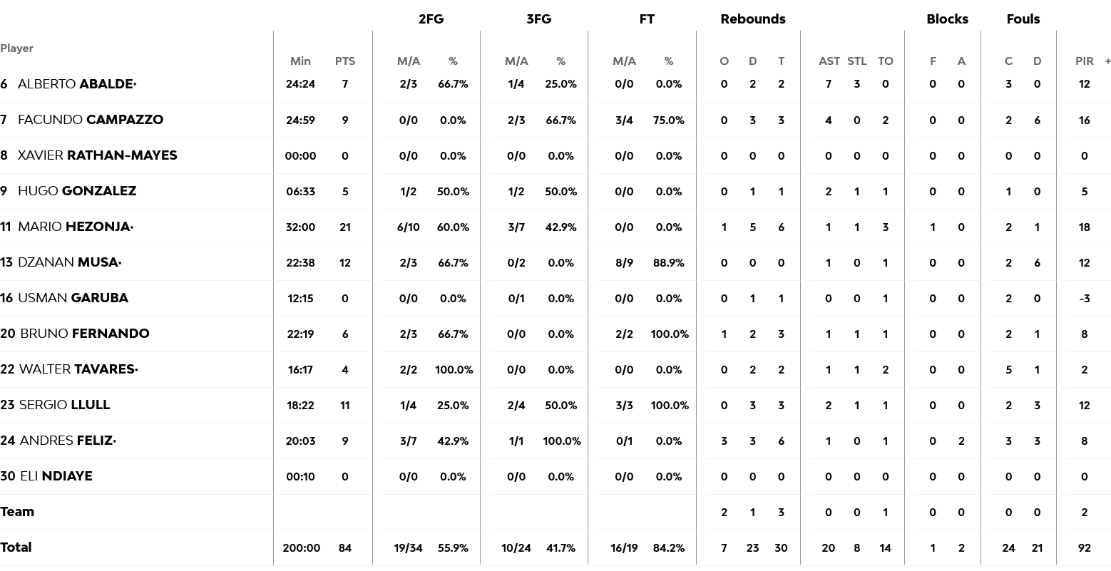 Ξεχώρισαν: Καταπληκτικός ο Κώστας Παπανικολάου, με 12 πόντους και 4/6 τρίποντα, με τους Γκος και Βεζένκοβ να έχουν από 10 πόντους έκαστος. Για την Ρεάλ, ακόμα ένα μεγάλο ματς από τον Χεζόνια, με 21 πόντους και έξι ριμπάουντ, με τον Μούσα να προσθέτει 12 και τον… αγέραστο Γιουλ 11 πόντους.