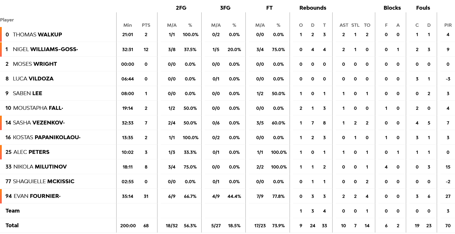 Ξεχώρισαν: Εκτός του Φουρνιέ, ο μοναδικός που διασώθηκε από τον Ολυμπιακό, ήταν ο Γκος με 12 πόντους, τέσσερα ριμπάουντ και δύο ασίστ. Από πλευράς Μονακό, ο Τζέιμς ήταν απολαυστικός με 17 ριμπάουντ, επτά ασίστ και ισάριθμα ριμπάουντ, ενώ ο Ντιαλό είχε 22 πόντους και οι Μπλόσομγκεϊμ και Τζαϊτέ από 12 και 11 πόντους αντίστοιχα.