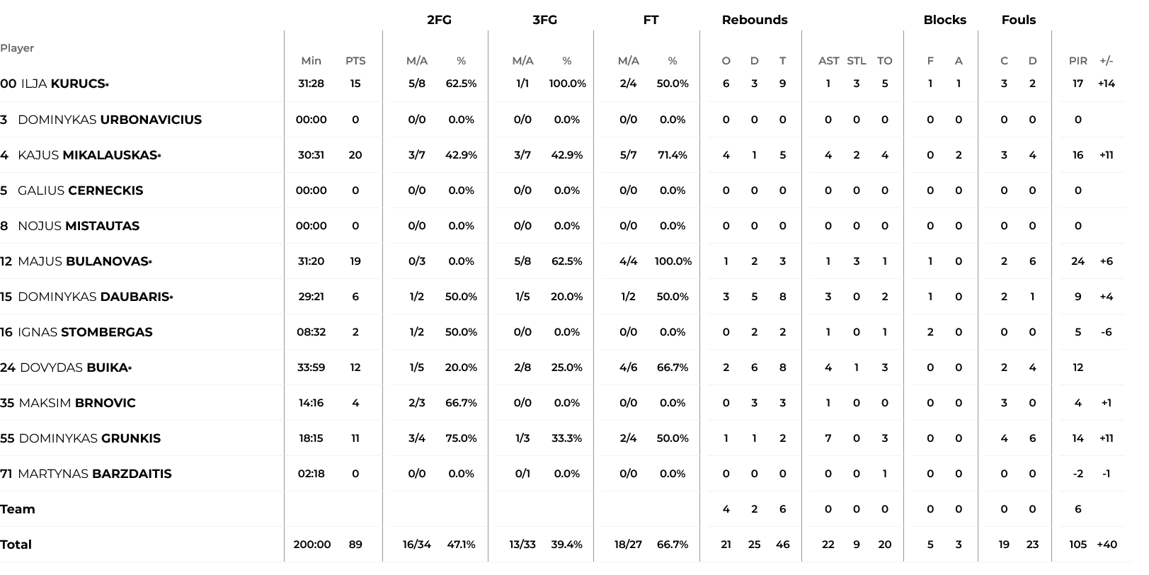 Στον τελικό που πραγματοποιήθηκε στο Άμπου Ντάμπι και διαιτήτευσε ο Γιάννης Τηγάνης, μαζί με τους Κερέμ Μπακί και Τόμας Μπισουέλ, οι Λιθουανοί επικράτησαν της Αρμάνι Μιλκάνο με 89-81, έχοντας σε εξαιρετική ημέρα τον Μικαλιάουσκας με 20 πόντους, αλλά και τον Μπουλανόβας με 19. Από κοντά ο Κούροτς, που… άγγιξε το double – double, έχοντας 15 πόντους και εννέα ριμπάουντ.