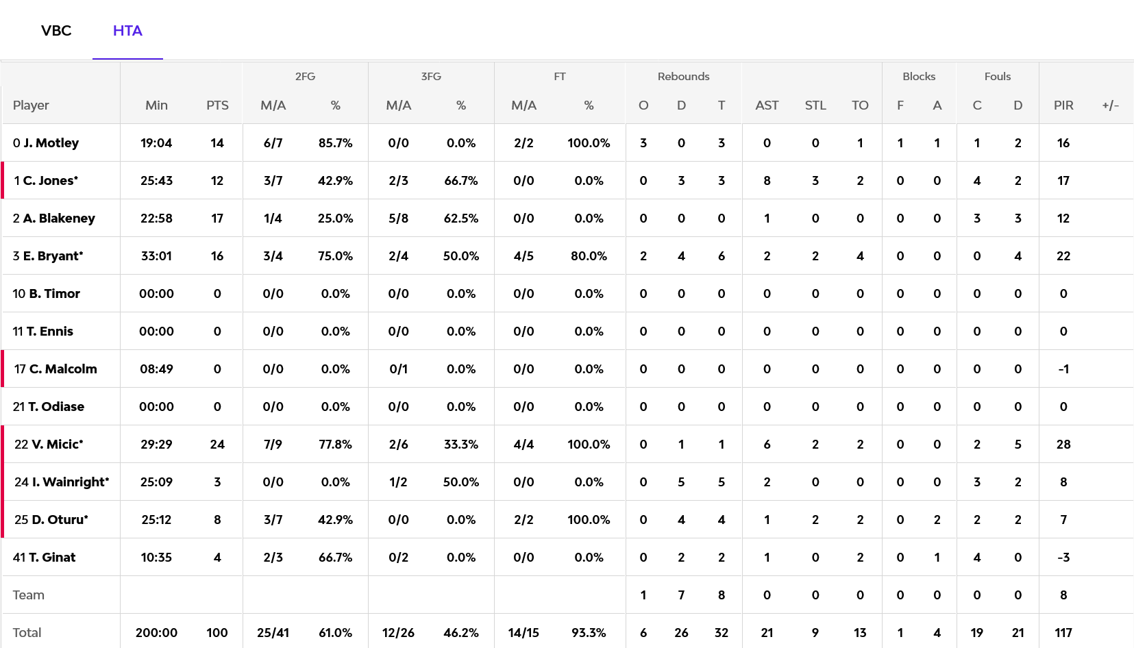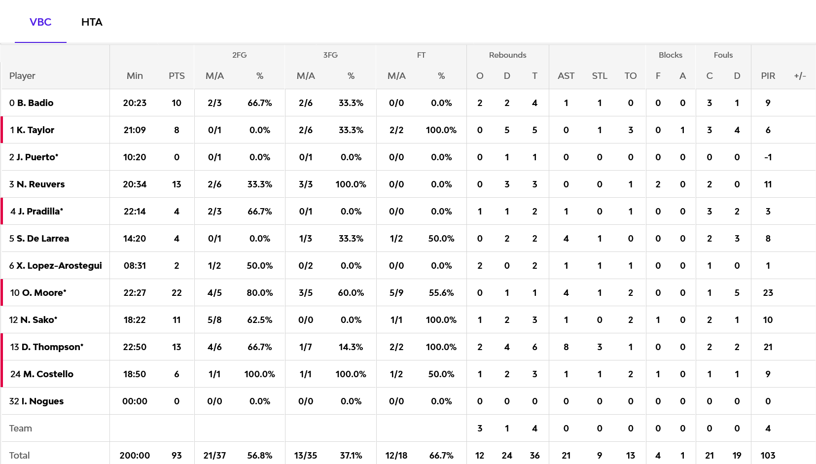 Πέντε παίκτες των φιλοξενούμενων τελείωσαν το παιχνίδι με διψήφιο αριθμό πόντων, με τον Μίτσιτς να είναι ο κορυφαίος με 24 και έξι ασίστ. Ακολούθησε ο Μπλάκνεϊ με 17 και ο Μπράιαντ με 16, ενώ ο καθοριστικός στο φινάλε Τζόουνς, τελείωσε το παιχνίδι με 12 πόντους και οκτώ ασίστ. Για την Βαλένθια, ο Μουρ είχε 22 πόντους και ο Τόμπσον 13.
