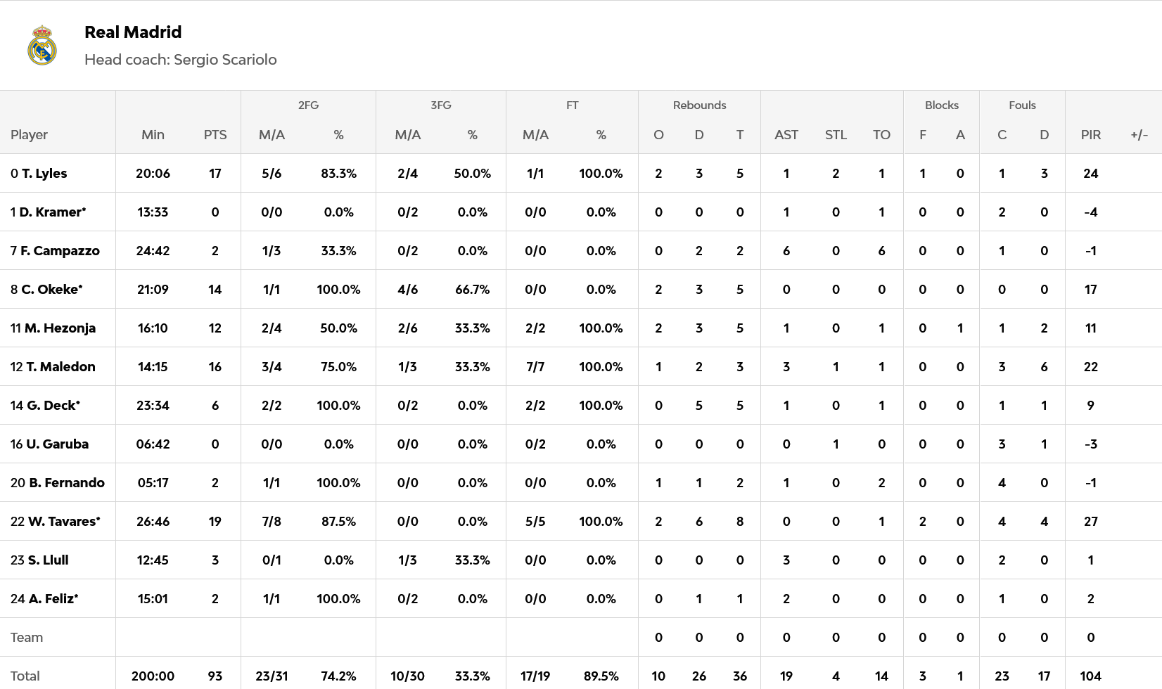 Η Παρτιζάν επέστρεψε στα τελευταία λεπτά και έκανε ντέρμπι του αγώνα, με την Ρεάλ να βρίσκει απαντήσεις και να νικάει εντός έδρας με 93-86. Η ισπανική ομάδα ανέβασε το ρεκόρ της στο 3-1, ενώ οι ασπρόμαυροι έπεσαν στο 2-2