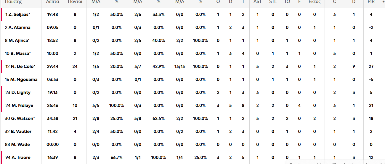Κορυφαίος των γηπεδούχων ο Ντε Κολό με 24 πόντους, 13/13 βολές και 5 ασσίστ. Από κοντά και ο Γουότσον με 21 πόντους (5/8 τρίποντα) και 5 ασσίστ. Από τους φιλοξενούμενους, ξεχώρισαν οι Πετρούσεβ με 13 πόντους και 10 ριμπάουντ και ο Καμπενγκέλε με 20 πόντους και 4 ριμπάουντ.