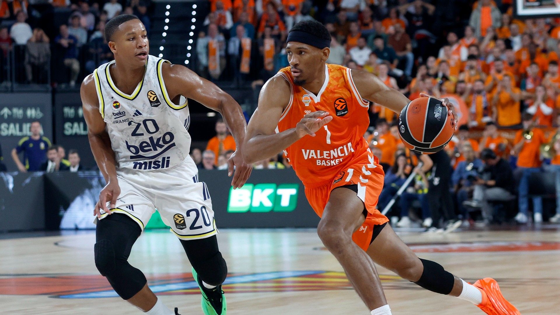 Οι δύο ομάδες «ψάχνονταν» στο πρώτο πεντάλεπτο του αγώνα, με τον Μοντέρο να ευστοχεί σε δύο βολές και τους γηπεδούχους να προηγούνται με 11-5. Η επιθετική δυστοκία της Φενέρ, βοήθησε την Βαλένθια να προηγηθεί με διψήφιο αριθμό πόντων στο 8' με 21-10. Ο Μέλι πέτυχε το τελευταίο καλάθι του πρώτου δεκαλέπτου και μείωσε σε 27-13. Οι «νυχτερίδες» συνέχισαν με «σπασμένα τα φρένα», με τον Ομάρι Μουρ να διαμορφώνει το 38-19 στο 14' και να αυξάνει ακόμη περισσότερο την διαφορά για την ομάδα του. Οι φιλοξενούμενοι έδειχναν να τα είχαν τελείως «χαμένα», ο Σάρας δεν ήταν καθόλου ευχαριστημένος από τους παίκτες του και ότι σχήμα και να δοκίμαζε, δεν του «έβγαινε». Ο Μπάλντγουιν στο φινάλε με δύο εύστοχες βολές, έστειλε τις δύο ομάδες στα αποδυτήρια, με το σκορ να βρίσκεται στο 51-35.