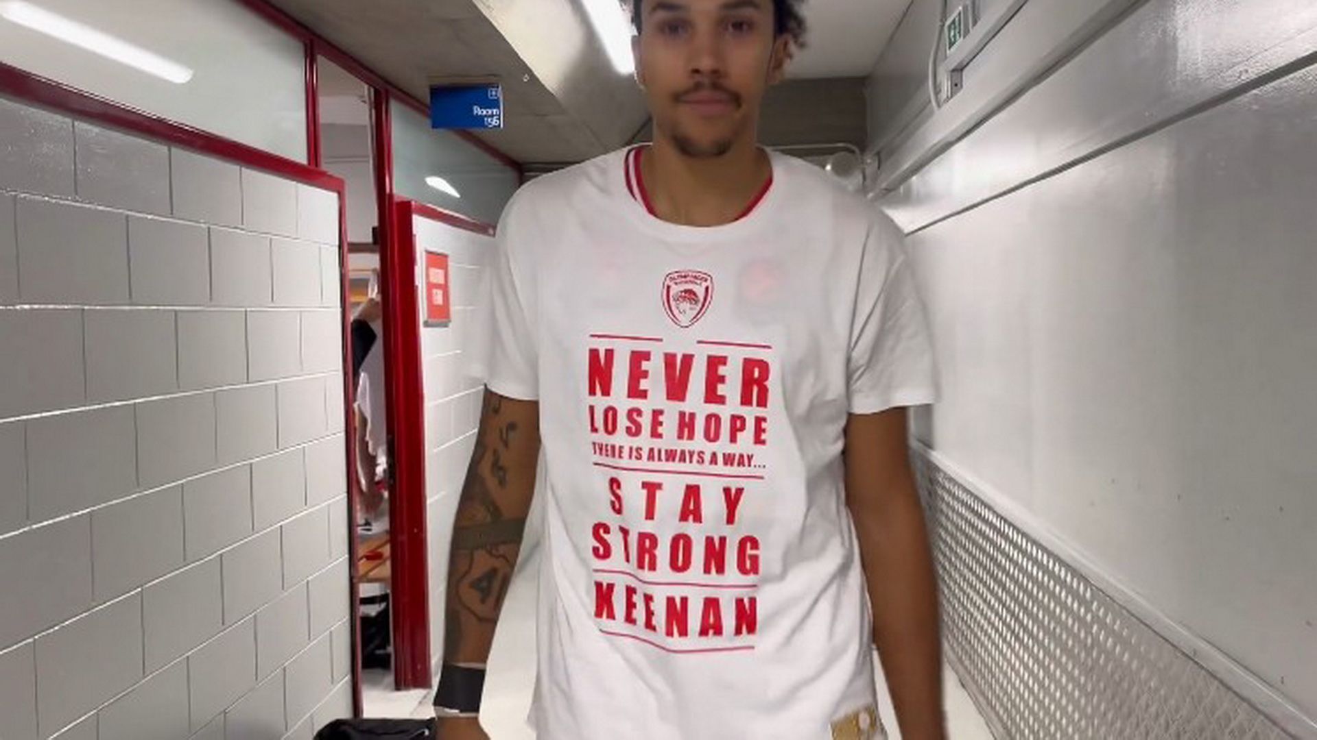 Οι παίκτες της ομάδας βγήκαν στο παρκέ με μπλουζάκι αφιερωμένο στον Αμερικανό γκαρντ, που μπροστά αναγράφει «Never lose hope, there is always a way, Stay strong Keenan» (Ποτέ μην χάνεις την ελπίδα, πάντα υπάρχει ένας τρόπος, μείνε δυνατός Κίναν), ενώ πίσω το όνομά του και τον αριθμό του.
