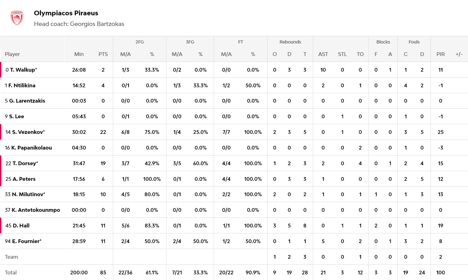 Ξεχώρισαν: 22 πόντους σημείωσε ο Βεζένκοβ, 19 ο Ντόρσεϊ και από 11 οι Χολ και Φουρνιέ. Για την Μπαρτσελόνα, εκτός του ασταμάτητου Κλάιμπερν, ο Πάντερ είχε 24 πόντους και οι Σενγκέλια και Βέσελι από 14 και 12 αντίστοιχα.