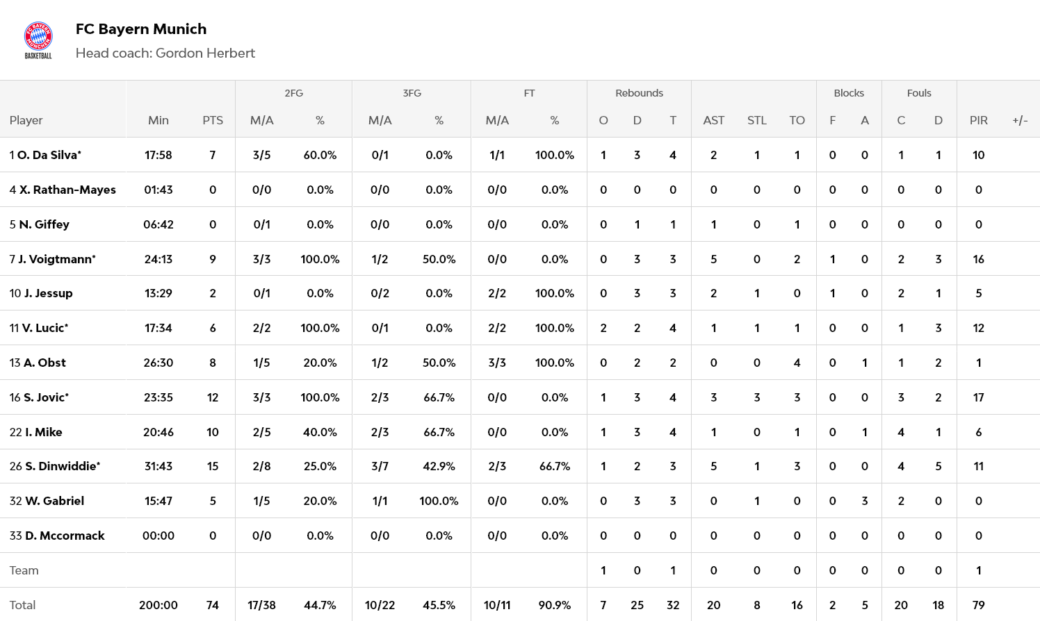 Ο Ερτέλ, με 15 πόντους, ανάμεσα τους και το σουτ που ουσιαστικά χάρισε την νίκη στην ομάδα του, ήταν ο κορυφαίος της ASVEL, που ανέβηκε στο 4-12. Για την Μπάγερν, που υπέστη την έβδομη συνεχόμενη ήττα της και υποχώρησε στο 5-11, ο… μοιραίος στο φινάλε, Σπένσερ Ντινγουίντι, είχε 15 πόντους.
