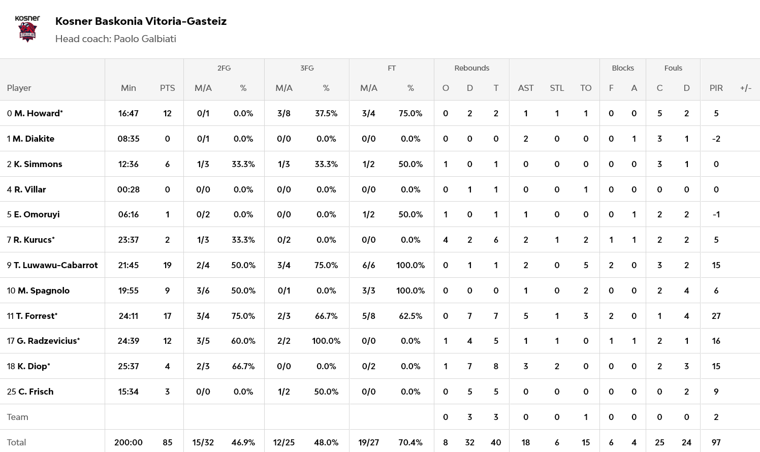 Εξαιρετικός ο Λουβαβού – Καμπαρό με 19 πόντους, απολαυστικός ο Τρεντ Φόρεστ με 17 πόντους, επτά ριμπάουντ και πέντε ασίστ, ενώ Χάουαρντ και Ρατζέβιτσους, σημείωσαν από 12 πόντους έκαστος.