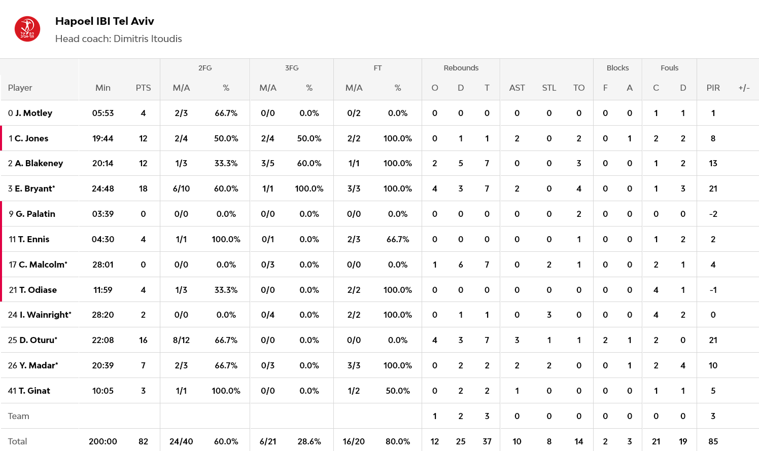 Εξαιρετικός ο Μπράιαντ με 18 πόντους και επτά ριμπάουντ, με τον Οτούρου να ακολουθεί με 16 πόντους και τους Τζόουνς και Μπλέικνι από 12 έκαστος.
