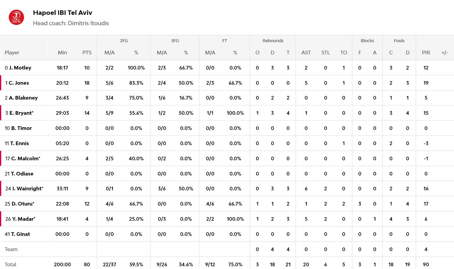 Για τους νικητές ξεχώρισαν οι Γκος και Ράιτ με 17 και 15 πόντους αντίστοιχα, ενώ για την Χάποελ ο Τζόουνς είχε 18 πόντους=