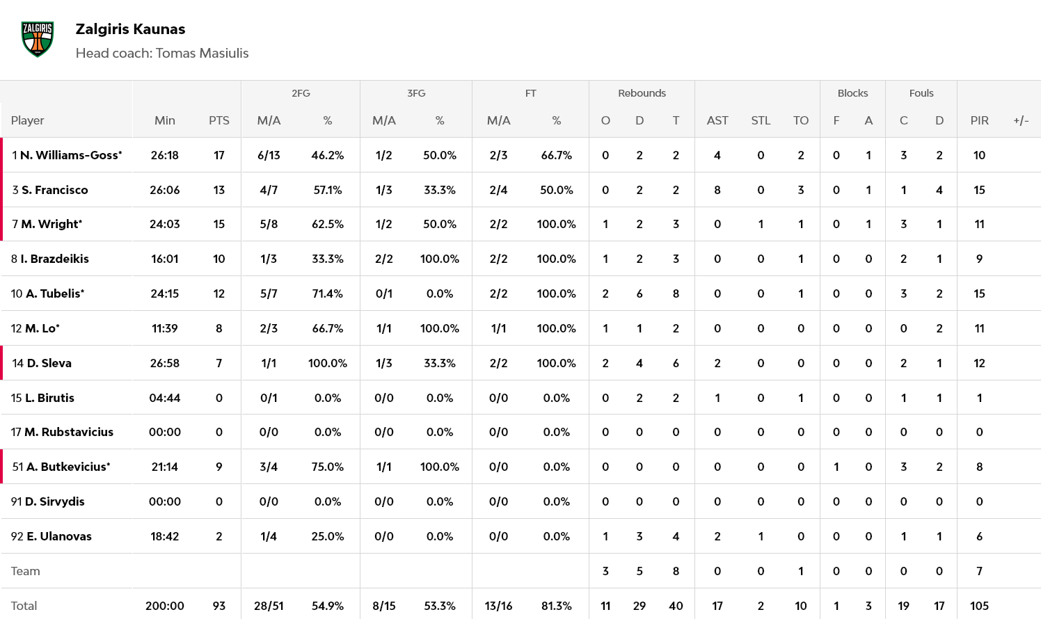 Η Ζάλγκιρις πέτυχε ένα τεράστιο διπλό στο Τελ Αβίβ επικρατώντας της Χάποελ με σκορ 93-80 με τον Γουίλιαμ Γκος να βρίσκεται σε καταπληκτικό βράδυ. Η Ζάλγκιρις ανέβηκε έτσι στο 11-8, ενώ για τους Ισραηλινούς αυτή είναι η 6η ήττα.
