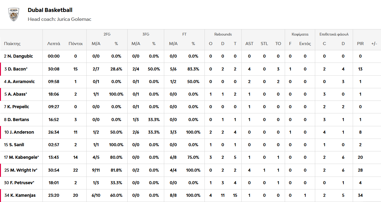 Ντουμπάι-Φενέρμπαχτσε 92-81: Καμένιας και Ράιτ «πλήγωσαν» την καλύτερη άμυνα της Euroleague