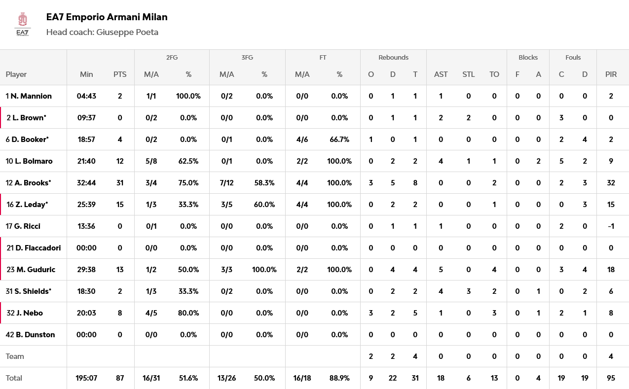Η Αρμάνι αν και δεν πατούσε καλά στο πρώτο ημίχρονο, μεταμορφώθηκε στο δεύτερο και ξεπέρασε το εμπόδιο της Αναντολού Εφές με 87-74. Ανέβηκε στο 11-10 η ομάδα του Μιλάνου, υποχώρησε στο 6-15 η τουρκική ομάδα.
