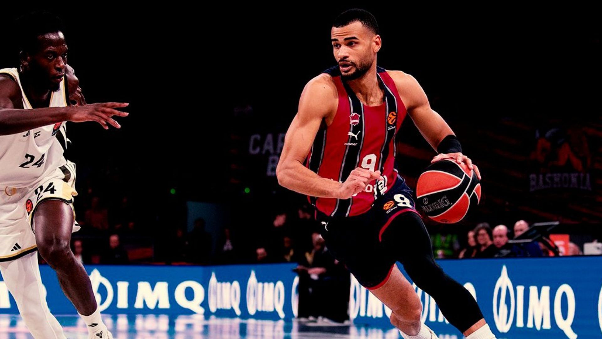 H Μπασκόνια άνοιξε το σκορ και προηγήθηκε με δύο πόντους με τα καλάθια του Σίμονς (2-0, 1' λεπτό) και του Ραντζεβίτσιους (4-2, 3' λεπτό), με την Βιλερμπάν να φέρνει τον αγώνα στα ίσα με τα δίποντα του Βαουτιέ (2-2, 2' λεπτό και 4-4, 3' λεπτό). Η ομάδα από την Βιτόρια ανέβασε την διαφορά της στους τέσσερις πόντους μετά τα δίποντα του Ραντζεβίτσιους (8-4, 3' λεπτό) και του Σίμονς (10-6, 4' λεπτό), αλλά και στους έξι πόντους, με το δίποντο του Ντιακιτέ (12-6, 5' λεπτό), του Λουβαβού Καμπαρό (14-8, 6' λεπτό) και του Ομορούγι (22-16, 9' λεπτό). Η γαλλική ομάδα έριξε την διαφορά, με την βολή του Εντιαγέ (22-17, 9' λεπτό) και με τις δύο βολές του Χάρισον (22-19, 9' λεπτό), με την ομάδα από την χώρα των Βάσκων να έχει δίποντο του Λουβαβού-Καμπαρό (24-19, 9' λεπτό). Η Μπασκόνια προηγήθηκε με πέντε πόντους στο τέλος της πρώτης περιόδου (24-19).
