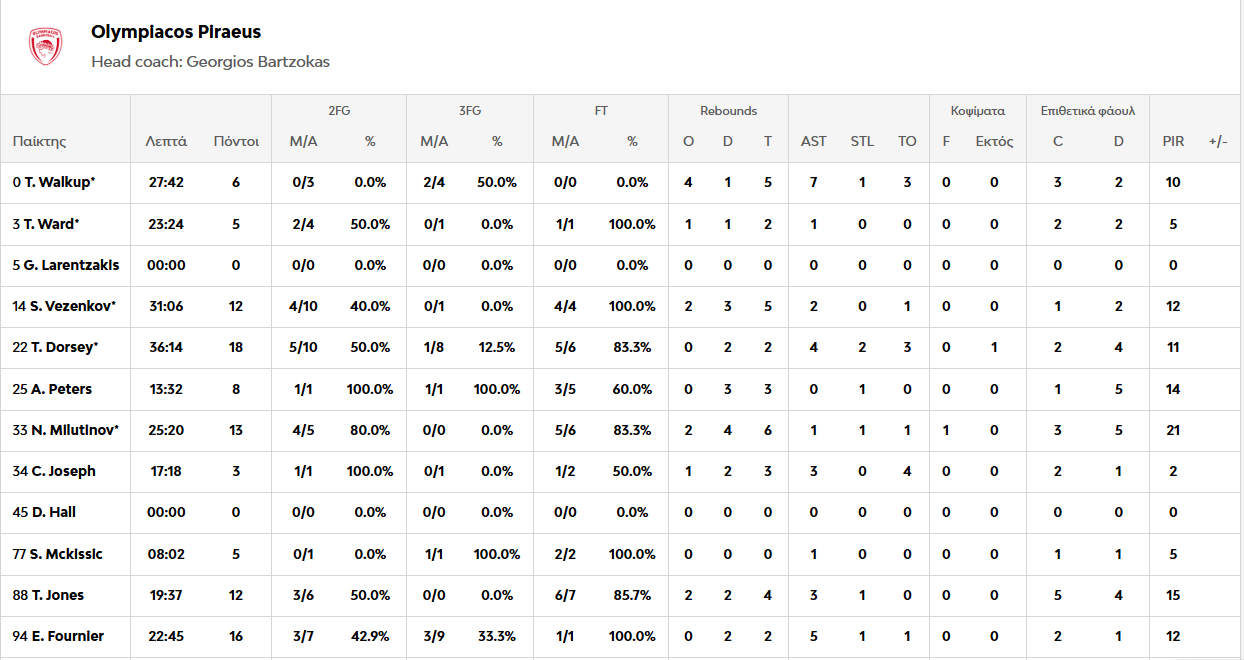 Ξεχώρισαν: Από την Ντουμπάι ο Μπέικον με 21 πόντους και 7 ριμπάουντ και ο Ράιτ με 18 πόντους και 7 ασίστ. Από τον Ολυμπιακό ξεχώρισε ο Μιλουτίνοβ με 13 πόντους και 6 ριμπάουντ, ο Ντόρσεϊ με 18 πόντους, ενώ μεγάλη εμφάνιση έκανε και ο Φουρνιέ με 16 πόντους και 5 ασίστ.