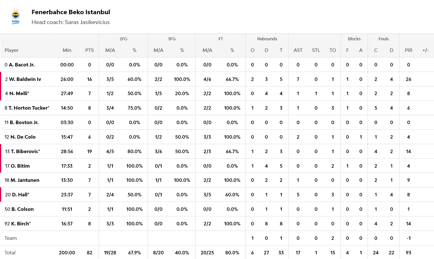 Εξαιρετική εμφάνιση από τον Μπάλντγουιν, με 16 πόντους, πέντε ριμπάουντ και επτά ασίστ, με τον Μπιμπέροβιτς να έχει 19 πόντους.