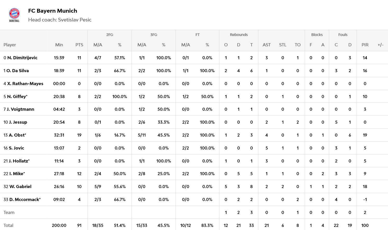 Από την Μπάγερν διακρίθηκαν οι Όμπστ και Μάικ με 19 και 12 πόντους αντίστοιχα. Από την Μονακό ο Τζέιμς πέτυχε συνολικά 30 πόντους, ενώ οι Μπλόσομγκειμ και Νέντοβιτς είχαν από 12 πόντους έκαστος.