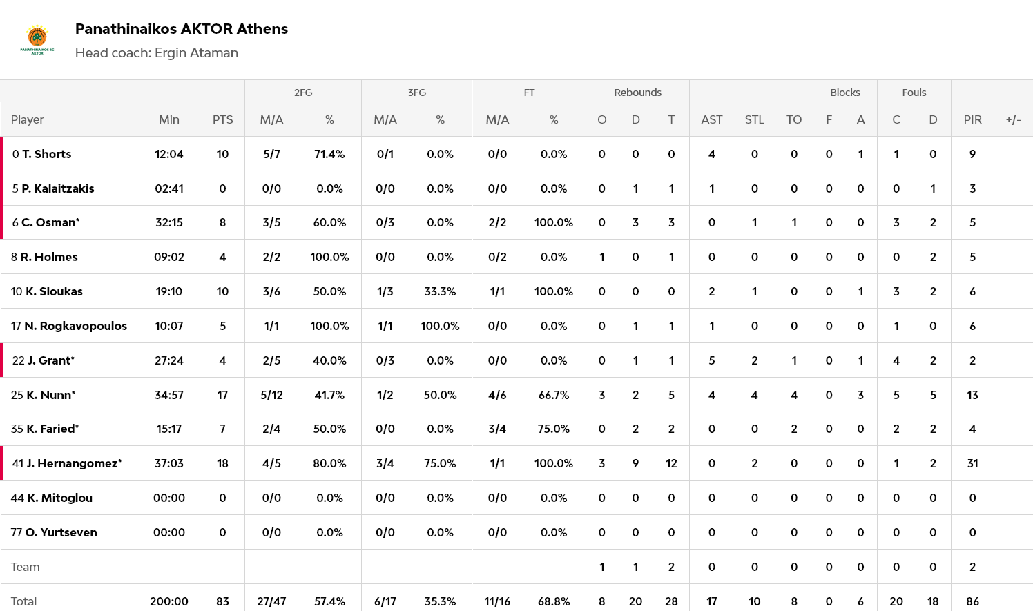 Ξεχώρισαν: 13 πόντους, ανάμεσα τους το buzzer beater της νίκης, αλλά και εννιά ασίστ, είχε ο Μπάλντγουιν. Για τον Παναθηναϊκό, συγκλονιστικός ήταν ο Χουάντσο, με 18 πόντους και 12 ριμπάουντ, 17 πόντους είχε ο Ναν, στην επιστροφή του στα παρκέ, ενώ Σορτς και Σλούκας είχαν από 10 πόντους έκαστος.