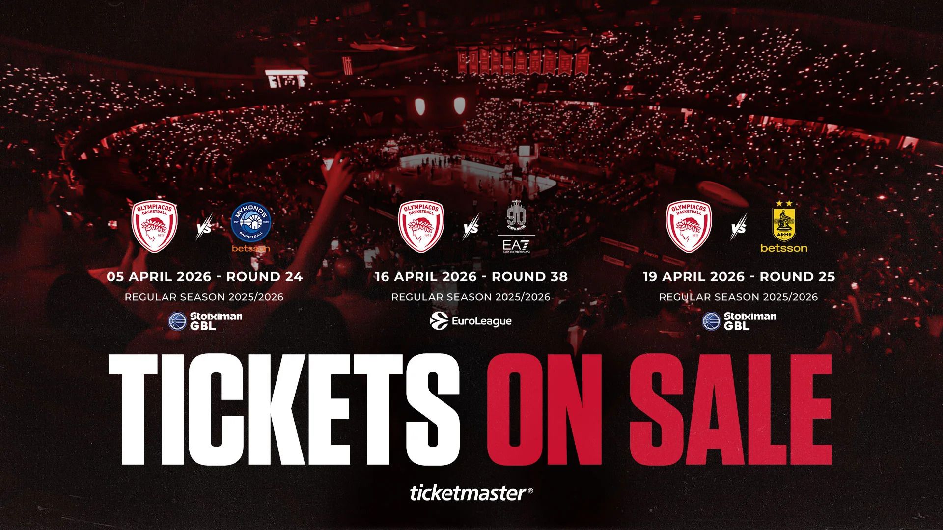 Οι συγκεκριμένοι αγώνες είναι με την ΜΥΚΟΝΟ BETSSON BC (Κυριακή 5 Απριλίου, 13:00), με την EA7 EMPORIO ARMANI MILAN (Πέμπτη 16 Απριλίου, 21:15) και με τον ΑΡΗ BETSSON (Κυριακή 19 Απριλίου, 13:00).