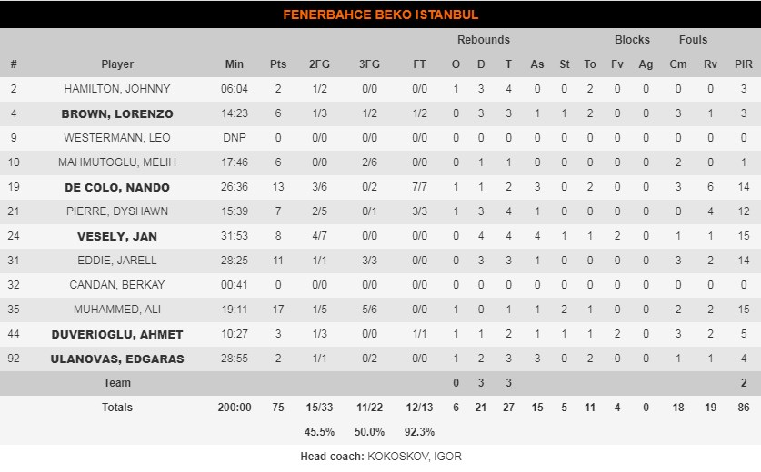 Η Φενέρμπαχτσε ξέσπασε στο τελευταίο μέρος της αναμέτρησης φτάνοντας ακόμη και στο +11 (58-69), με αποτέλεσμα να «καθαρίσει» τη νίκη (65-75, 40').