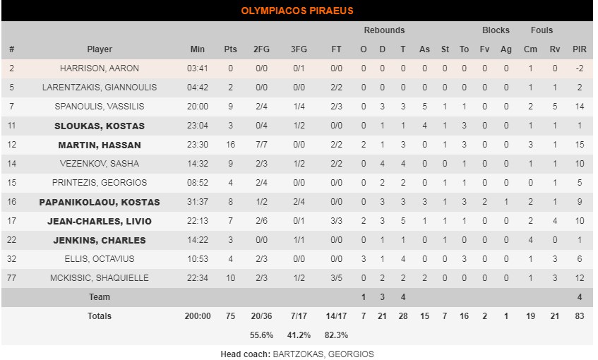 Μεγαλύτερη διαφορά: Το +17 του Ολυμπιακού στο 32 (43-60).