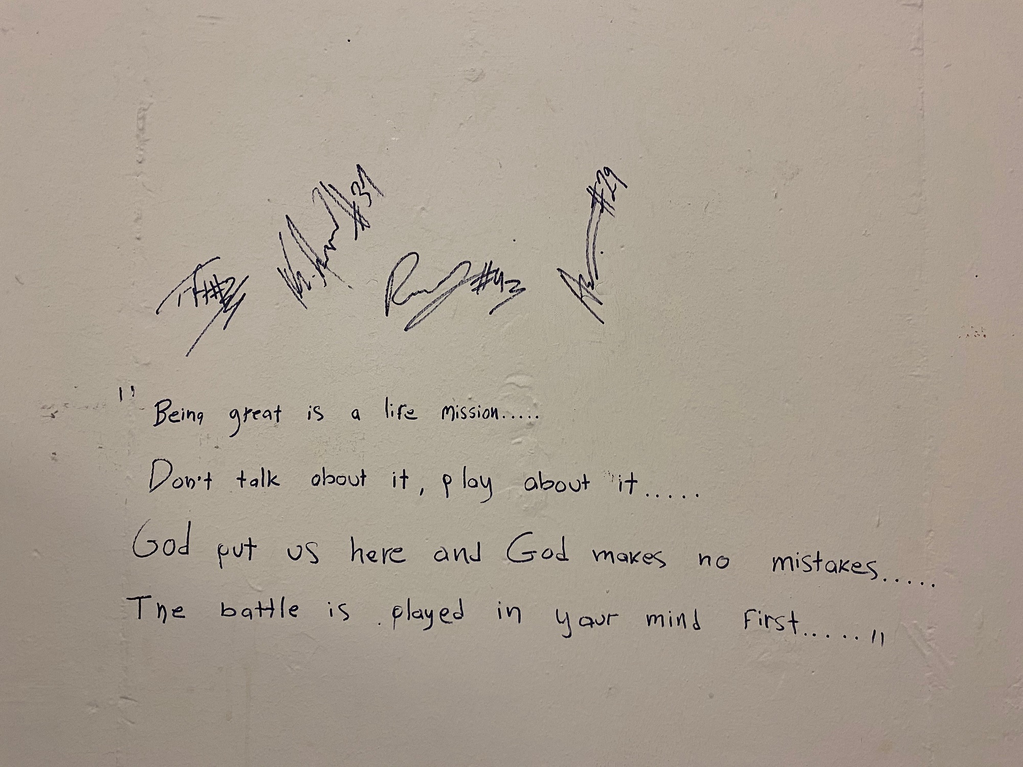 Μάλιστα, στην τελευταία του προπόνηση, ο δις MVP του ΝΒΑ με τα αδέλφια του, άφησε το δικό του ξεχωριστό μήνυμα, στον τοίχο των αποδυτηρίων: