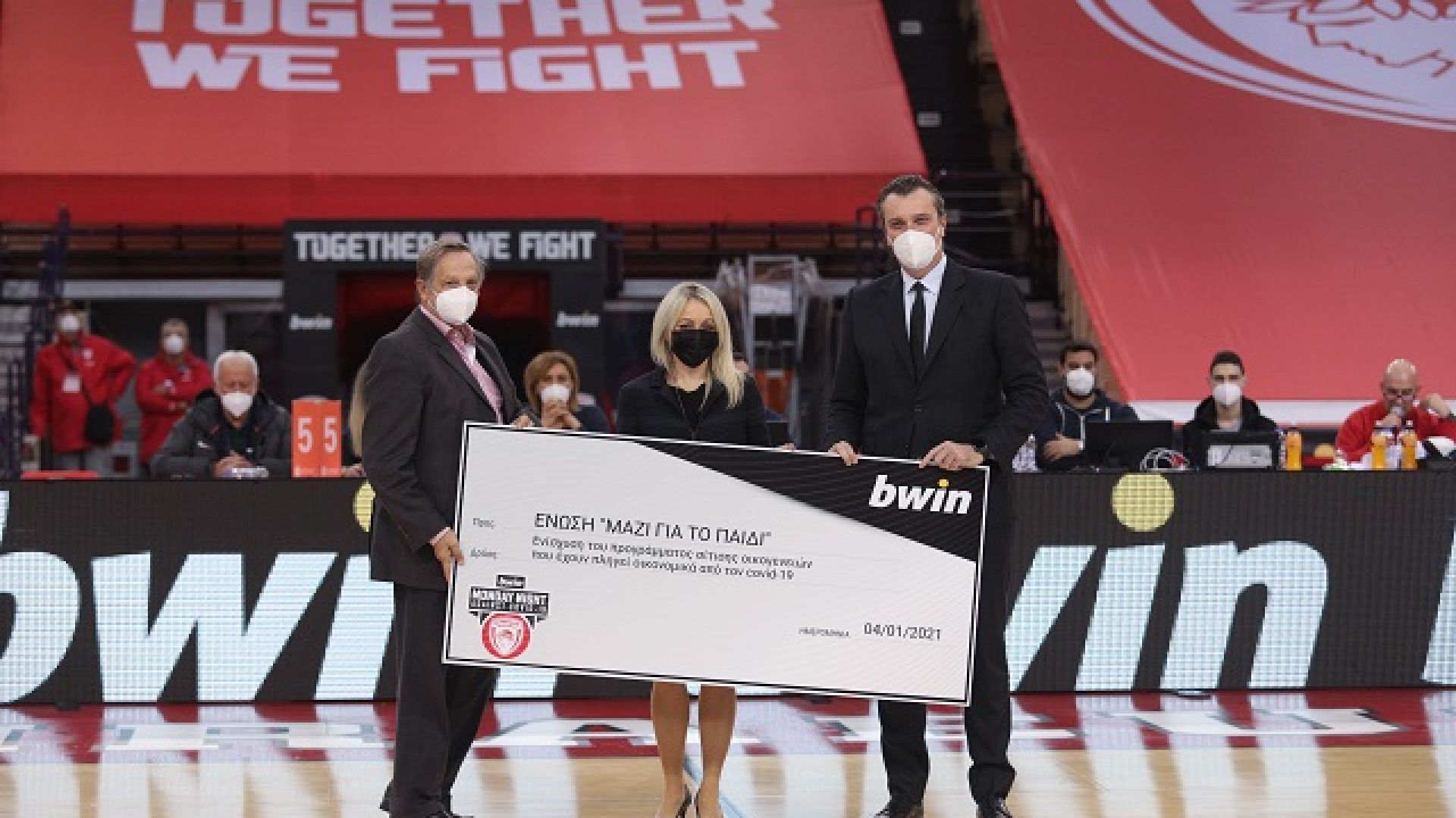 Ο Γενικός Διευθυντής της ΚΑΕ Ολυμπιακός, Νίκος Λεπενιώτης, μαζί με την Διευθύντρια Εταιρικής Επικοινωνίας, Ιωάννα Μπερίου, παρέδωσαν μία επιταγή στο μέλος του Διοικητικού Συμβουλίου της Ένωσης, «Μαζί για το Παιδί», Γιώργο Παπαδάκη, για την ενίσχυση του προγράμματος σίτισης οικογενειών που έχουν πληγεί οικονομικά από την πανδημία του κορονοϊού.
