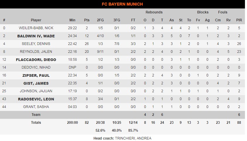 Το στατιστικό που έκανε τη διαφορά: Ο Ολυμπιακός είχε 18/19 βολές και 10/22 τρίποντα, ενώ ο Μπόλντγουιν έκανε τα 7 από τα 13 λάθη της Μπάγερν.