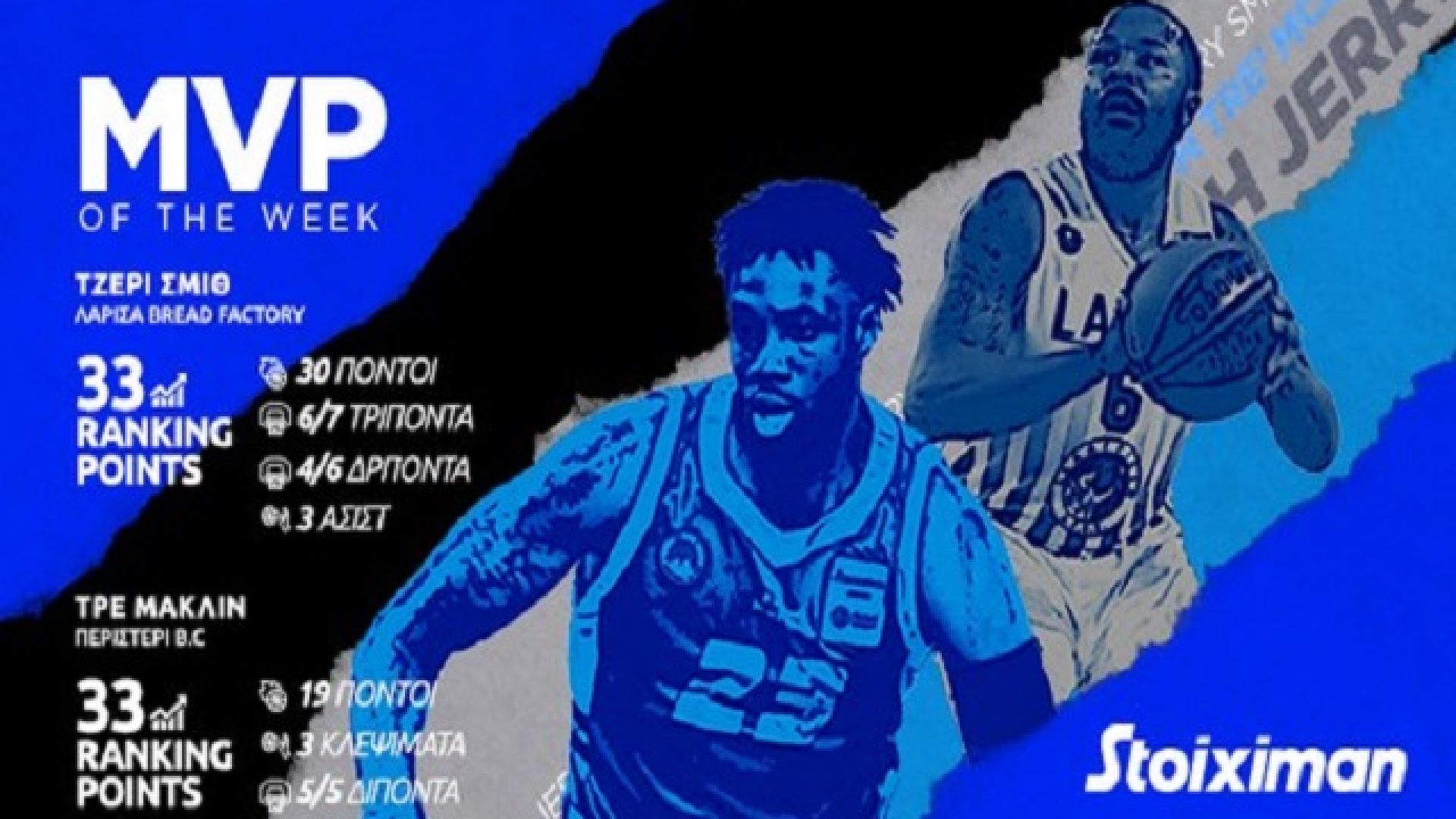 «Για τρίτη εβδομάδα την φετινή σεζόν αναδείχθηκαν δύο Stoiximan MVP! Και για δεύτερη φορά ο Τζέρι Σμιθ θα μοιραστεί την διάκριση με κάποιον άλλο παίκτη!
