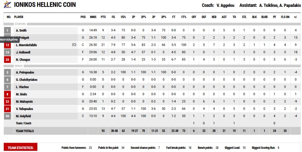 O Iωνικός πήρε την φιλική νίκη (88-93) στο ΣΕΦ απέναντι στον Ολυμπιακό, στο πλαίσιο του προγράμματος Monday Night Against Covid-19.