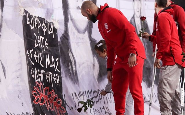 Η 8η Φεβρουαρίου είναι ημέρα μνήμης για την ομάδα του Πειραιά και οι ερυθρόλευκοι δεν θα μπορούσαν να μην τιμήσουν τα 21 αδικοχαμένα θύματα της Θύρας 7.